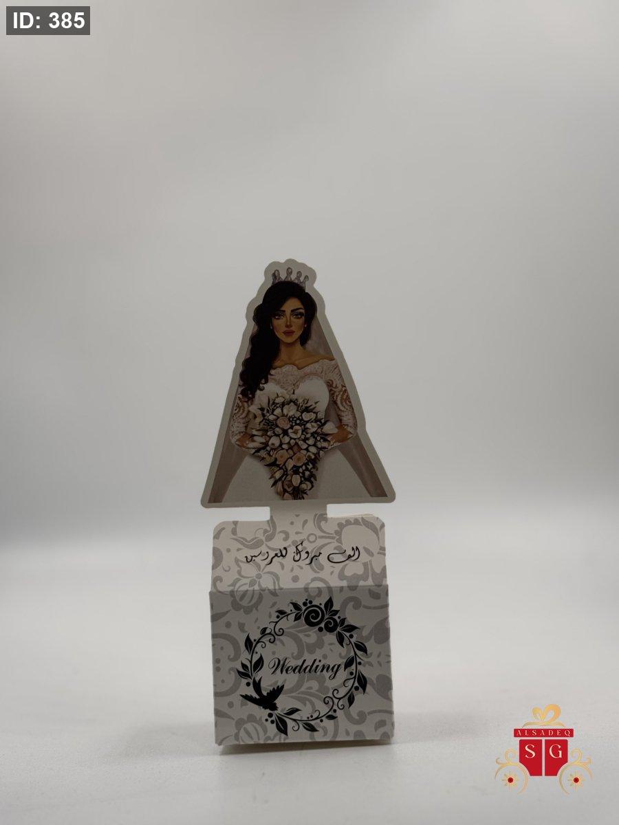 توزيعات كرتون عرس عريس وعروس لون ابيض