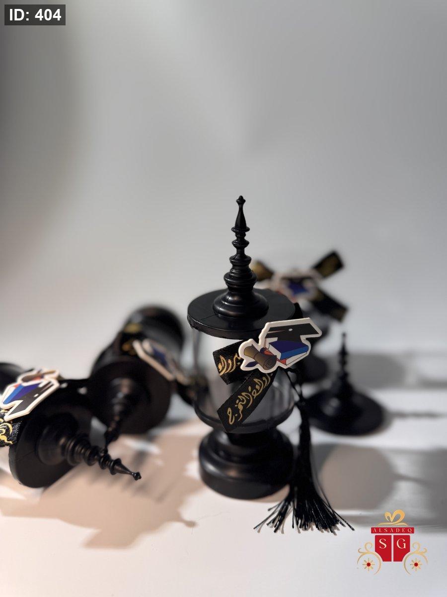 علب تخرج دائري ببيونة زرقاء