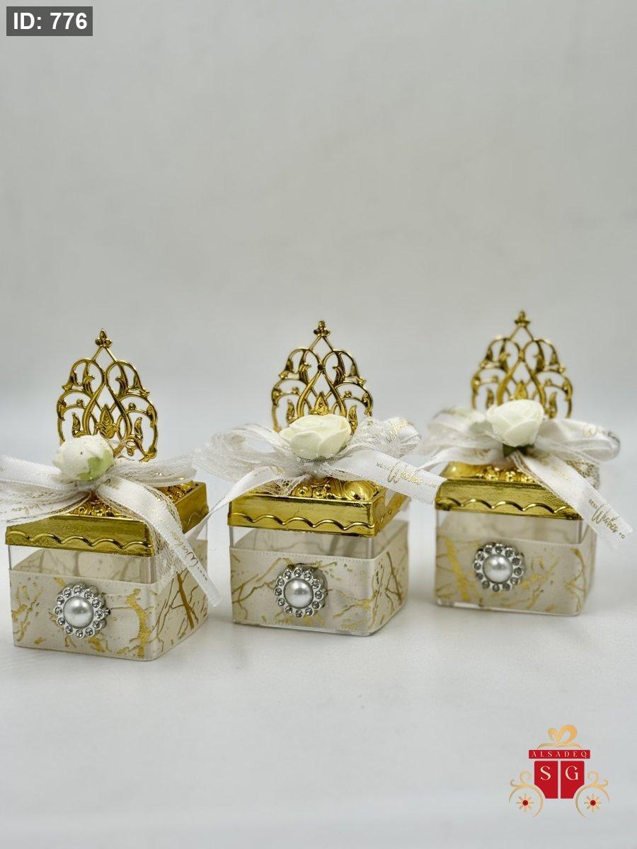 توزيعة اعراس اكلاريك مربعة مع تاج ذهبي 12 حبة